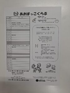 9月「あおばっこくらぶ」のお知らせ